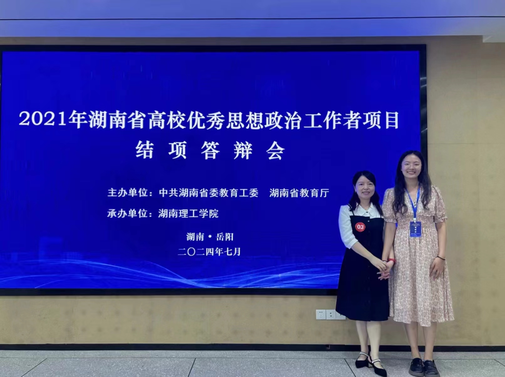 7月24日,湖南省2021年高校优秀思想政治工作者项目结项答辩会在湖南理工学院召开。“红梅心语”名师工作室的核心成员王小凤老师进行了项目结项答辩,蔺璐璐陪同观摩学习。