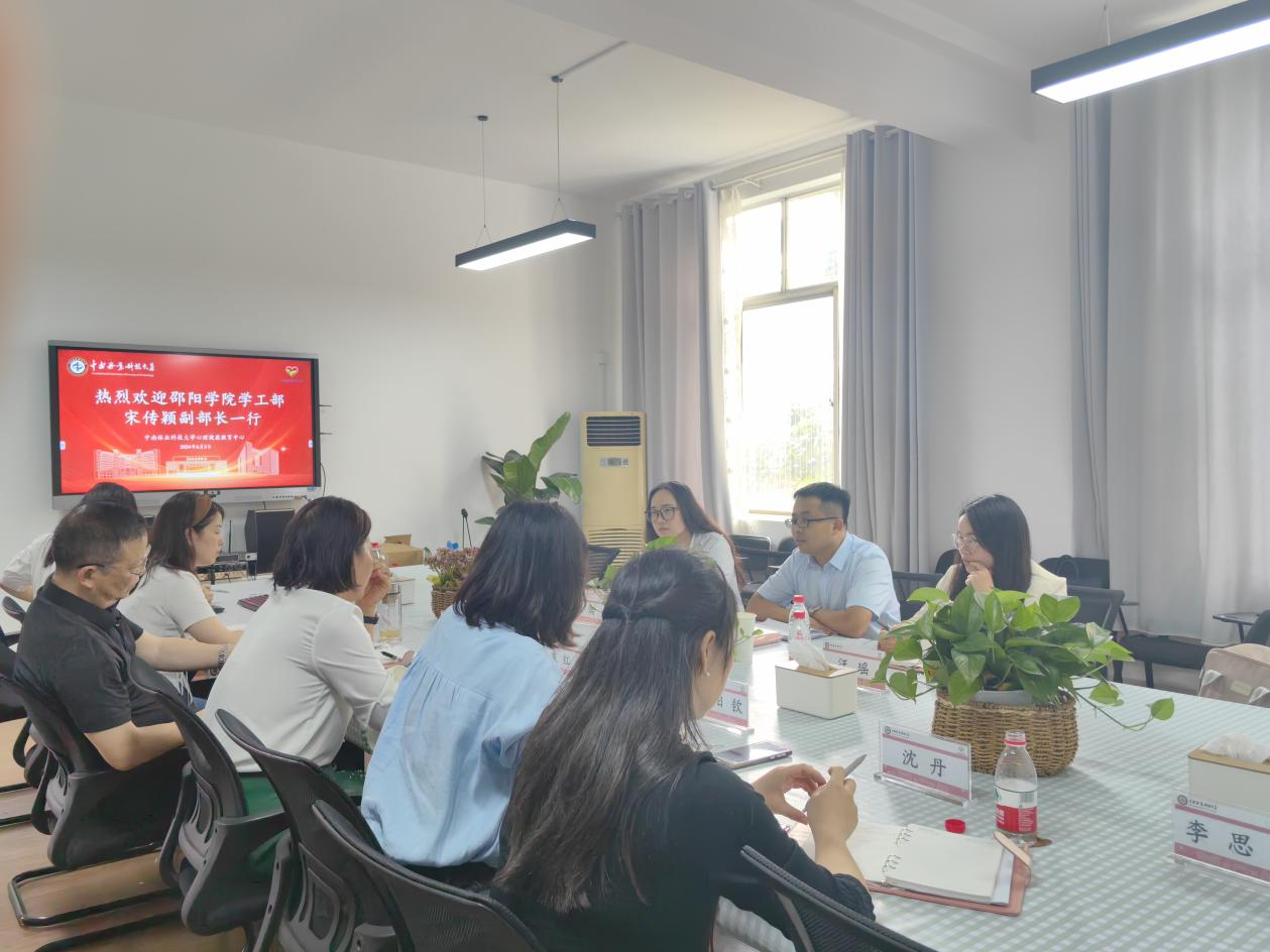宋传颖副部长在发言中详细介绍了邵阳学院心理健康教育的现状,并表示此次来访旨在学习我校在成长辅导的运行考核、辅导员和学生干部的培训、学生的日常管理、危机事件的处理及课程教学等方面的先进经验和做法,以促进邵阳学院心理健康教育工作的进一步提升。