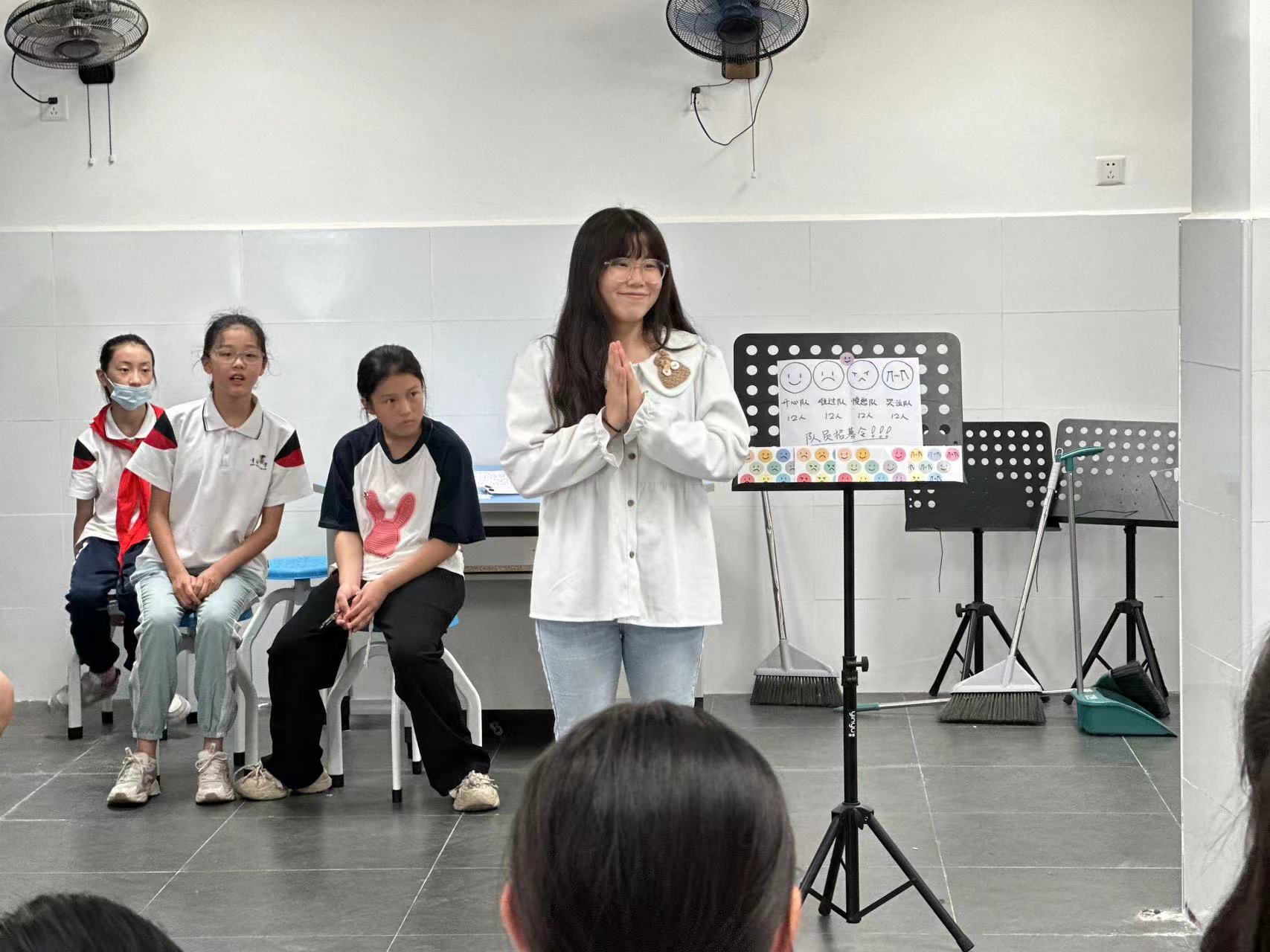 活动伊始,一场生动有趣的“情绪蹲”小游戏迅速打破了志愿者与同学们之间的陌生感,使得现场气氛瞬间活跃起来。同学们手持代表不同情绪的贴纸,被分为“开心”“难过”“愤怒”和“哭泣”四个小组。随着志愿者们富有节奏的口令声,同学们迅速融入游戏,现场充满了欢声笑语。