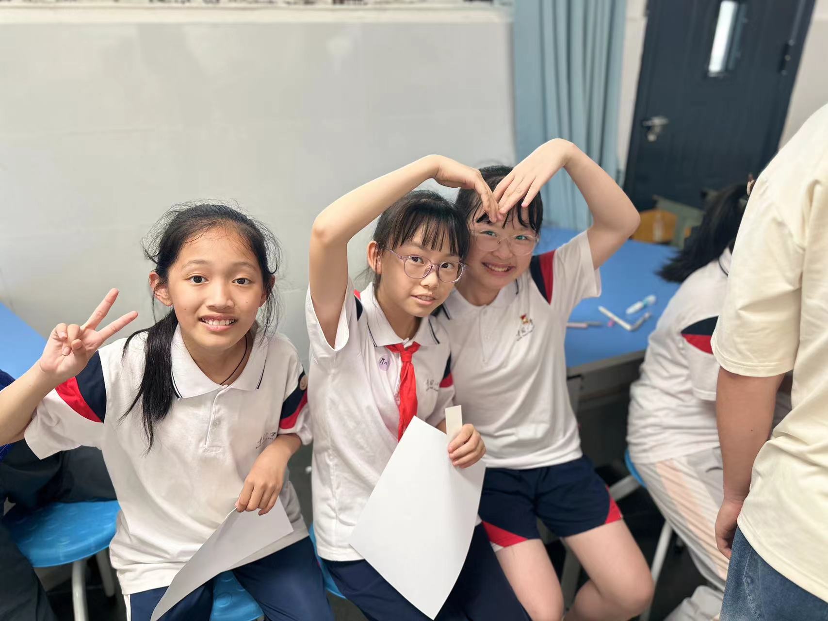随后的“表情接龙”和“纸飞机”活动更是将活动的氛围推向了高潮。在志愿者的引导下,同学们纷纷运用自己的肢体语言表达情绪字条中的含义,或拿起画笔描绘自己对情绪的独特理解。这些充满创意和想象力的作品不仅展现了同学们的才华,更体现了他们对情绪的深刻理解和体验。