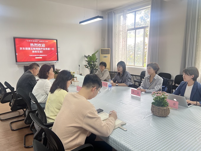 京东健康胡亚男对“互联网+校医家”项目情况及服务模式进行了详细介绍,就心理评估、药品销售、就医流程等关键环与我校教师进行深入探讨,提出优化方案。