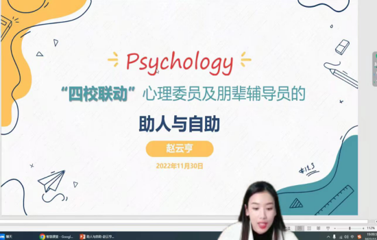 11月17日到11月30日,我校开展了六期“四校联动”心理委员联合会朋辈培训,此次培训面向我校及三所心理健康示范中心协作单位(湖南女子学院、湖南涉外经济学院、湖南外国语职业学院)的全体心理委员和心理干事,由我校学生工作部心理健康教育研究中心的老师以线上授课的形式向同学们讲述如何做好一名心理委员、谈话技能等多个方面的内容,现在让我们来简要地回顾一下这六堂课。