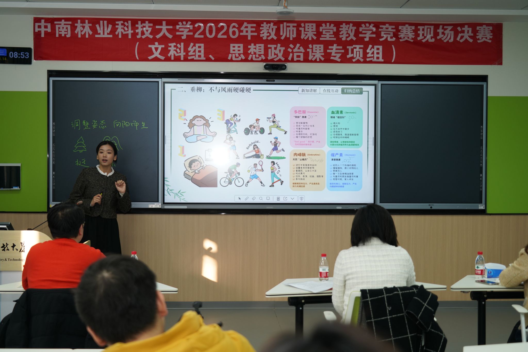 比赛中,赵云亨紧密结合我校学科特色与学生实际,围绕林学等专业背景,创新运用数字人“小叶子”、案例剖析、情景体验与小组共创等多种方法,将抽象的心理调适知识转化为生动课堂体验。课程以“松柏的挺立”与“柳树的摇曳”为自然隐喻,引导学生理解压力应对中“刚柔并济”的智慧,深刻阐释心理“姿态”调整的内涵,彰显了我校心理健康教育的校本特色与育人成效,赢得评委一致认可。