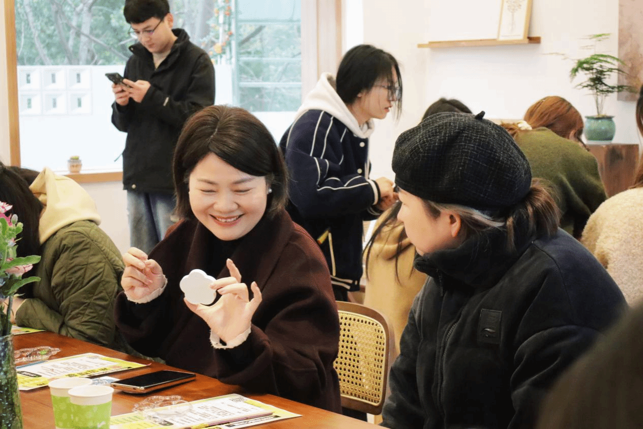 活动现场,教职工们在专业指导下,沉浸于香牌制作的全过程。从研磨香料开始,大家在细腻的触感与徐徐散发的草木清香中,逐步卸下工作的疲惫;在调配香方时,根据个人偏好选择不同香材,既是审美的表达,也是一次与自我内心的对话;随后的塑形与压花环节,则需要凝神静气、专注于当下,在指尖的一按一压间,压力悄然释放,内心归于宁静。温馨雅致的空间氛围,也为本次活动增色不少。心理中心咖啡吧光线柔和、布局温馨,成为教师们交流互动、疏解压力的理想场所。手作之余,三两同事围坐畅谈,分享创作心得与生活感悟,温暖的氛围在笑语中流淌,进一步强化了心理关爱的实效。
