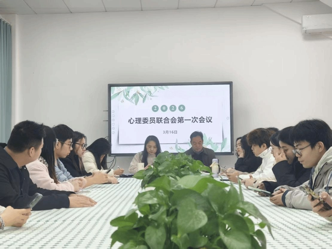 为总结工作成效,明确新学期工作方向,2026年3月16日中午,我校学生心理委员联合会(以下简称“心联会”)2026年春季学期第一次全体干部例会在中心会议室顺利召开。心理中心副主任黄迪皋老师、咨询服务科全体老师参会。