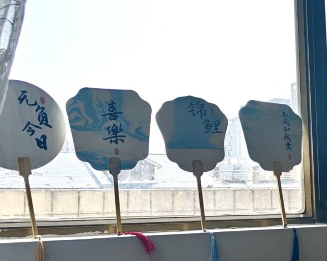 活动尾声,所有作品陈列于长廊中,流光溢彩间仿佛重现《诗经》中“言树之背,以漆为饰”的雅韵。此次活动以漆扇为媒介,将非遗技艺融入校园美育,让大家更加体会到传统文化的魅力。同学们希望今后能有更多这样的活动,在千年古韵中抚慰心灵,传承和弘扬中华民族的优秀传统文化。