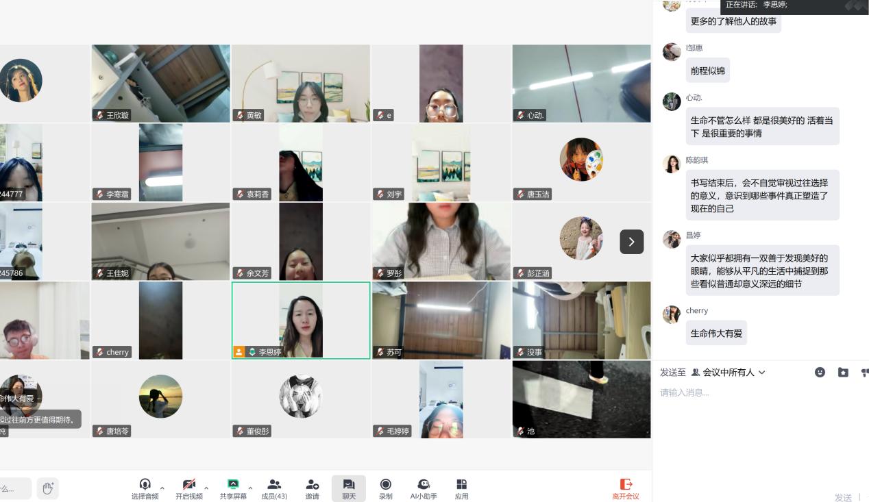 5 月 8 日晚,中南林业科技大学心理健康教育中心专任教师李思婷通过腾讯会议云端课堂,为 60 名学生带来了一堂别开生面的心理活动课 ——《生命盲盒:时光里的温柔答案》。课程以“生命盒子”为隐喻,引导学生回顾成长经历,直面生命中的喜悦与遗憾,最终学会接纳自我,成为自己生命的“作家”。
